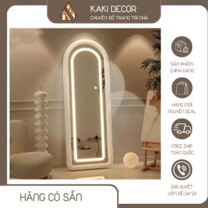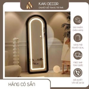 Gương treo tường hoặc gương đứng với viền khung được làm từ gỗ, inox mạ vàng, hoặc khung nhựa cao cấp mang lại nét sang trọng cho căn phòng.
